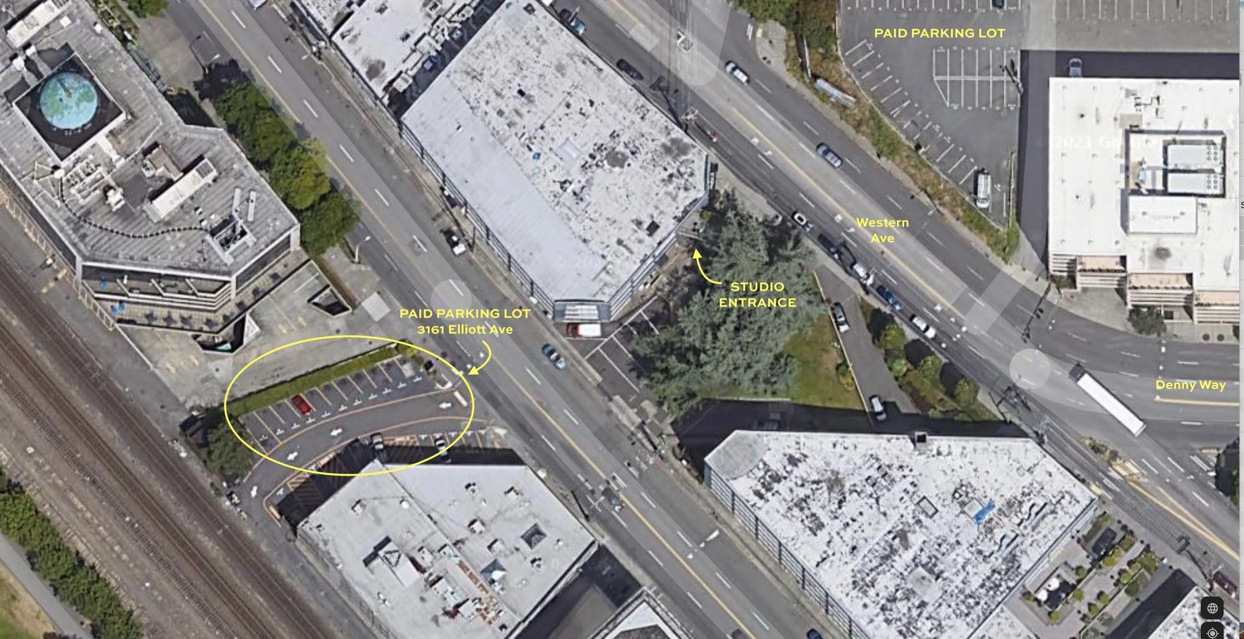 There are a few paid lots in the area, but street parking (both free and paid) is fairly abundant on the weekends. We recommend looking either along the building on Western (free), directly behind the studio on Elliott Ave (free), or a few blocks south of the studio on Western Ave towards the Olympic Sculpture Park (paid).